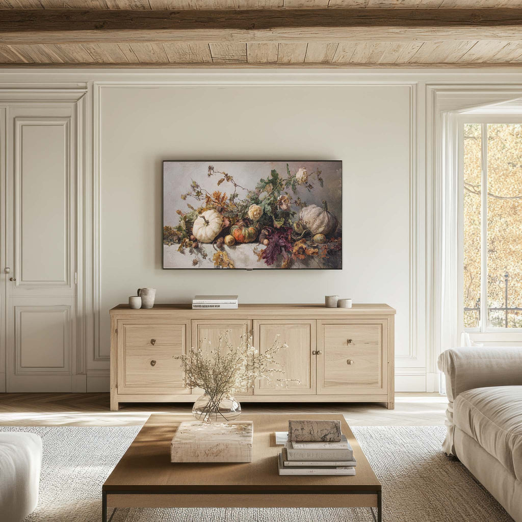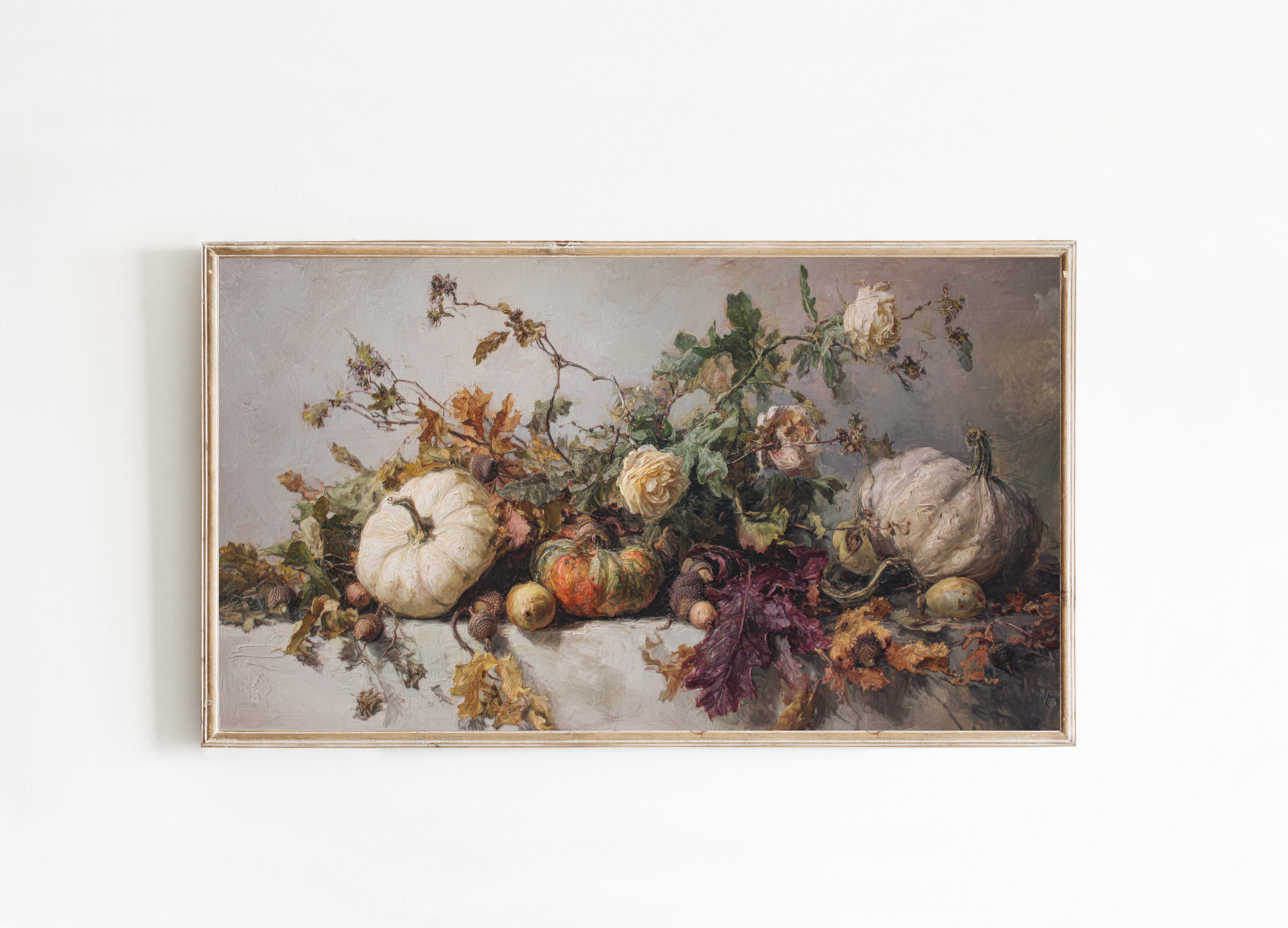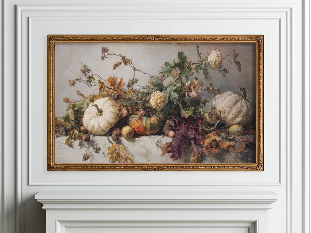 Enjoy this lovely digital painting of a Pumpkin Fall Still Life Painting TV Art this Fall season as fine art for your Frame TV. It's perfect for both Halloween and Thanksgiving.