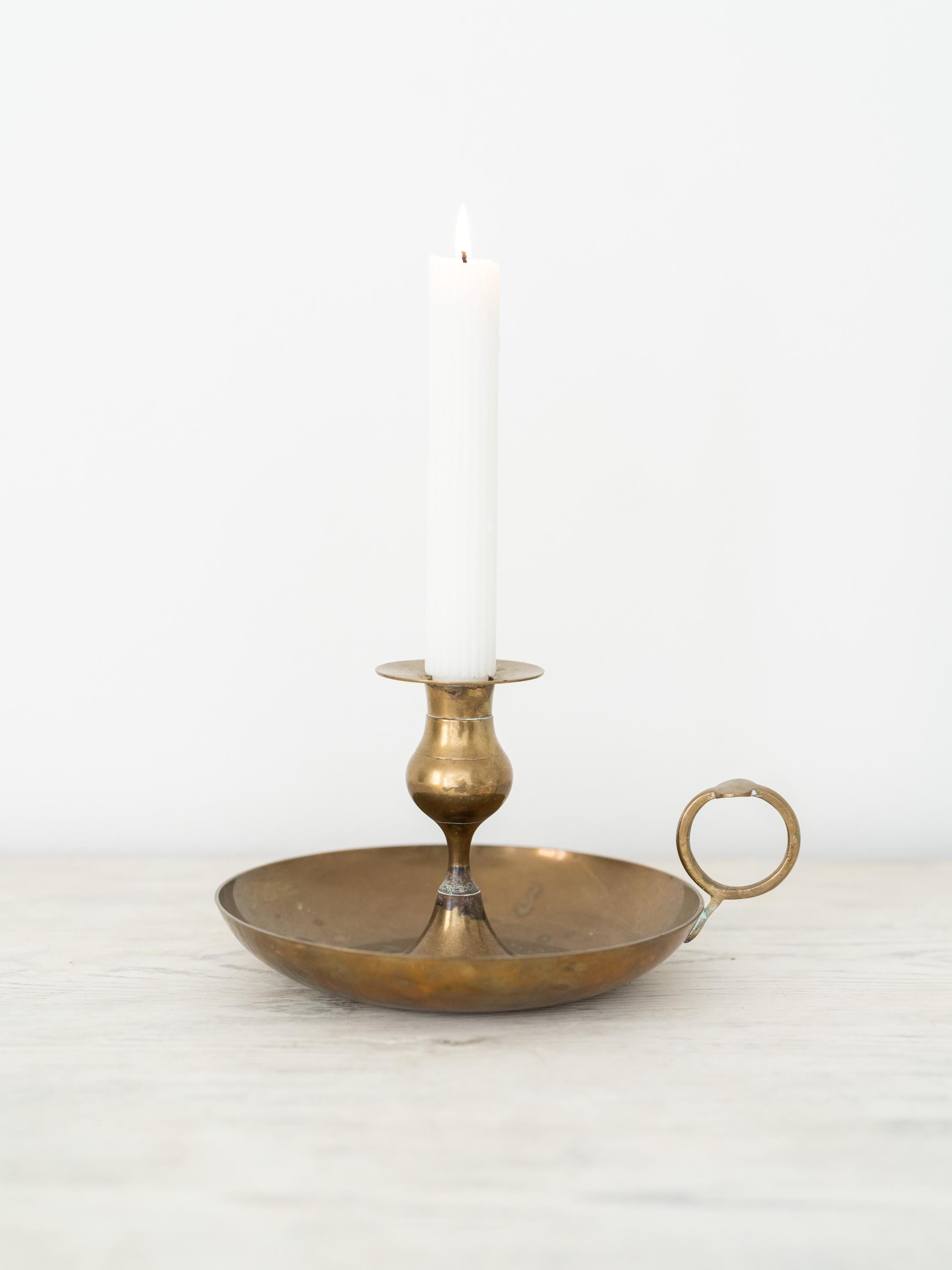 Brass chamberstick candle holders are everywhere in styling these days, and we are loving it! Their shiny warmth adds the perfect touch of patina to a vignette. These candlesticks were hand-selected by Michele and fit perfectly in your hand as you move from room to room. We light one in the evenings and early mornings, perfect for the upcoming cozy months.