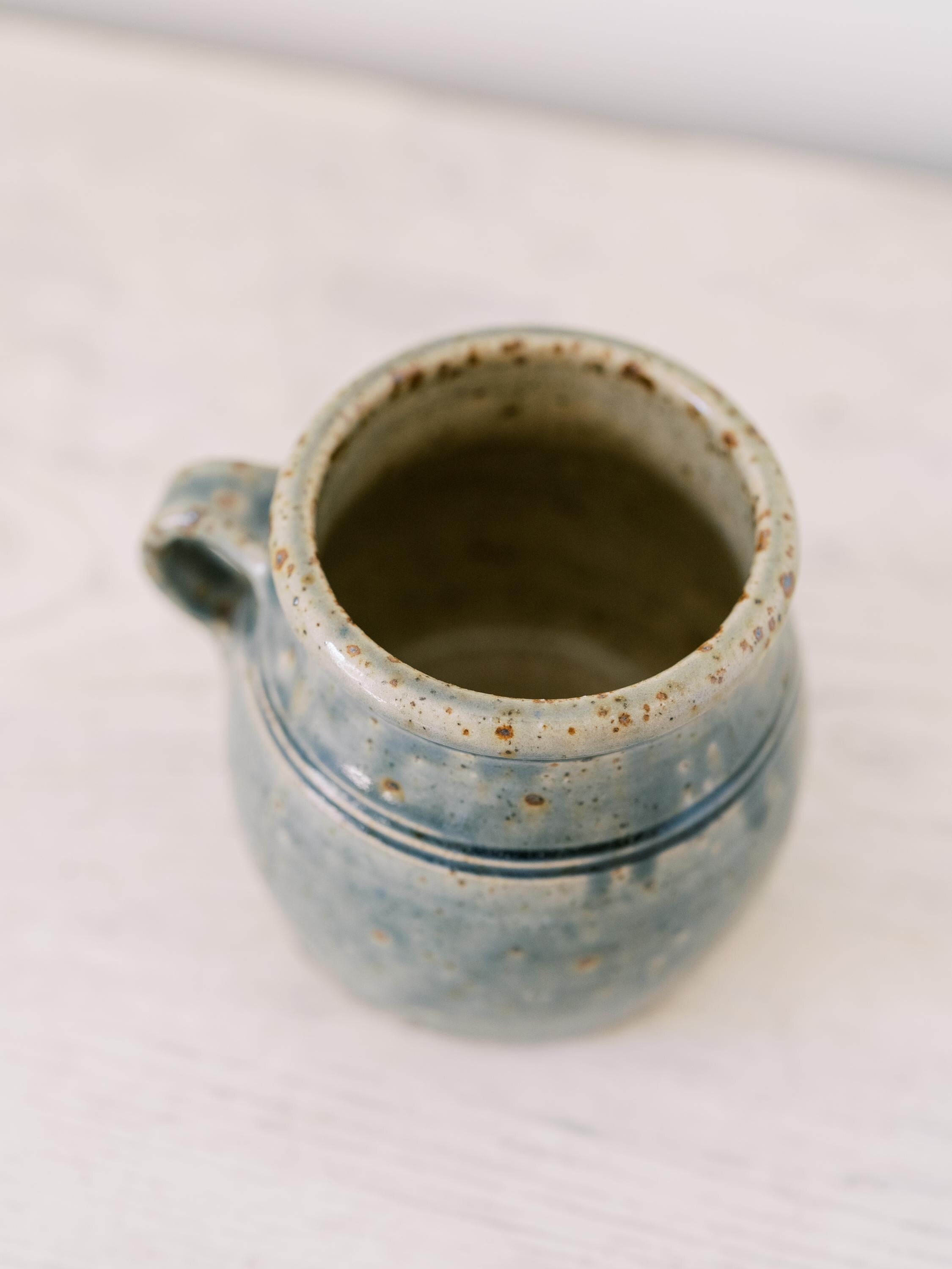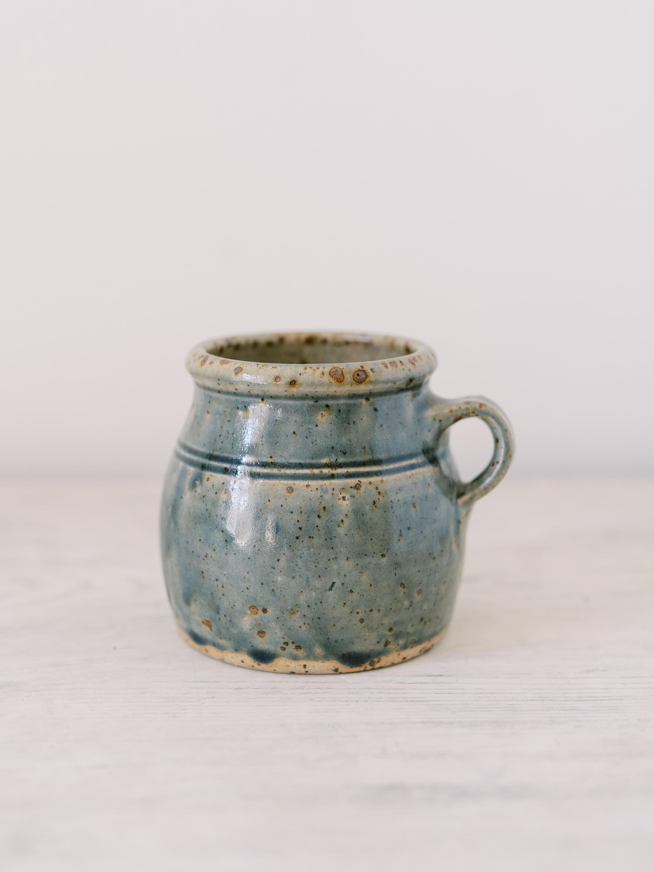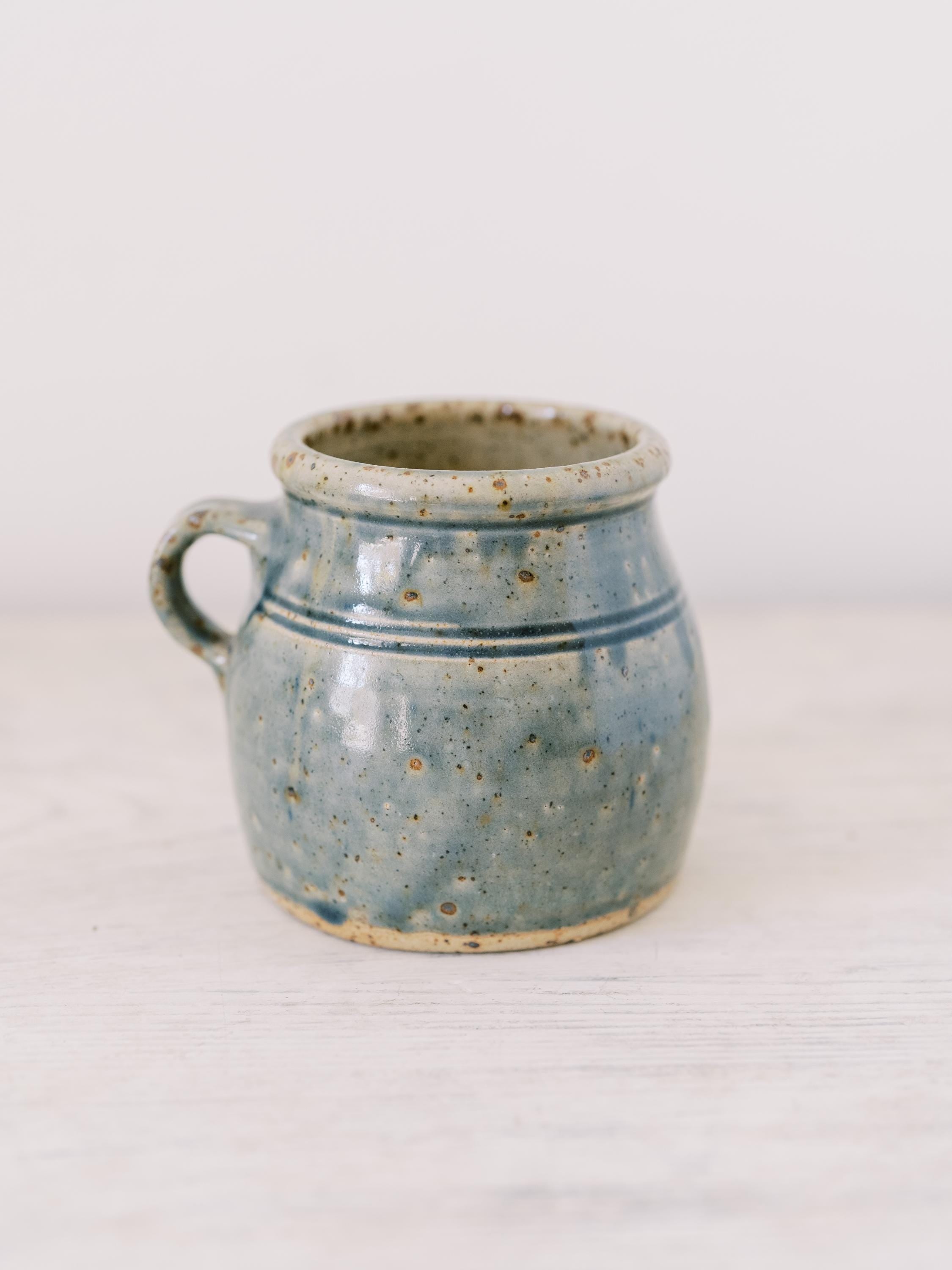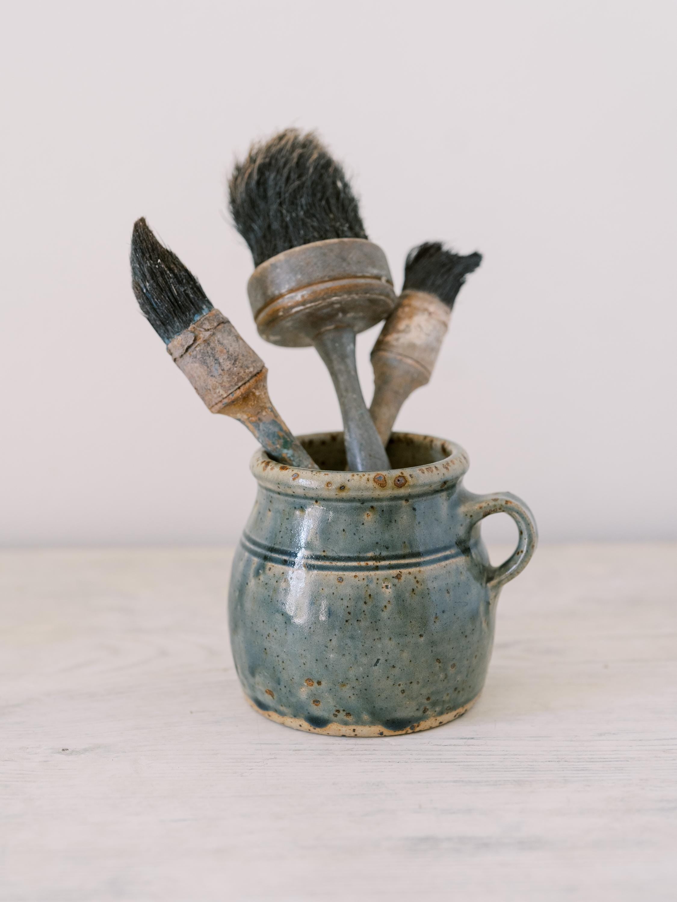 This lovely French mug is handcrafted and glazed in the most perfect shade of French blue. It was found in a market in the South of France and is perfect for sipping hot coffee or showing off collections of found objects (paint brushes not included).